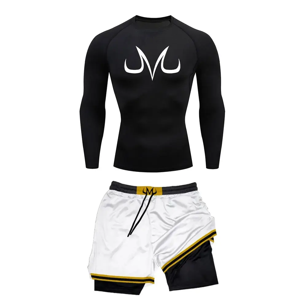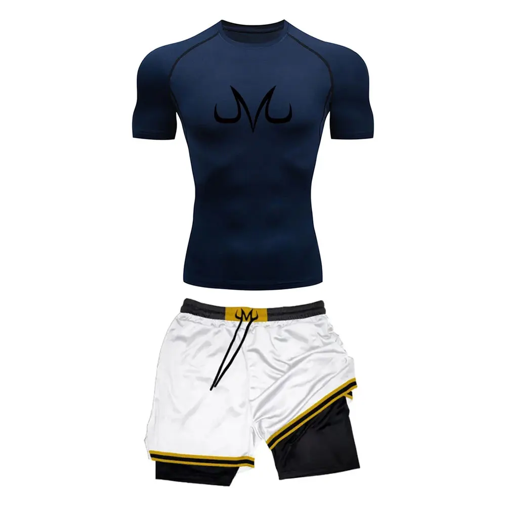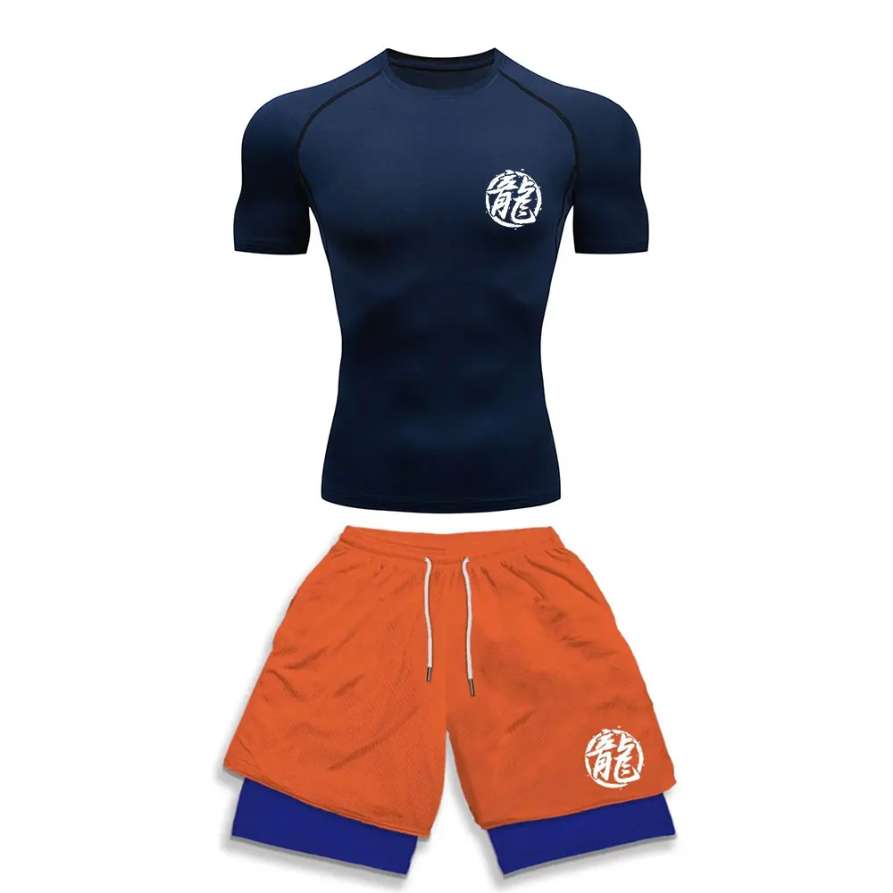 Men’s Tracksuit Two Pieces Sets Anime Print Fitness Sport Suit Running T-Shirt+shorts Men’s breathable Casual Sportswear