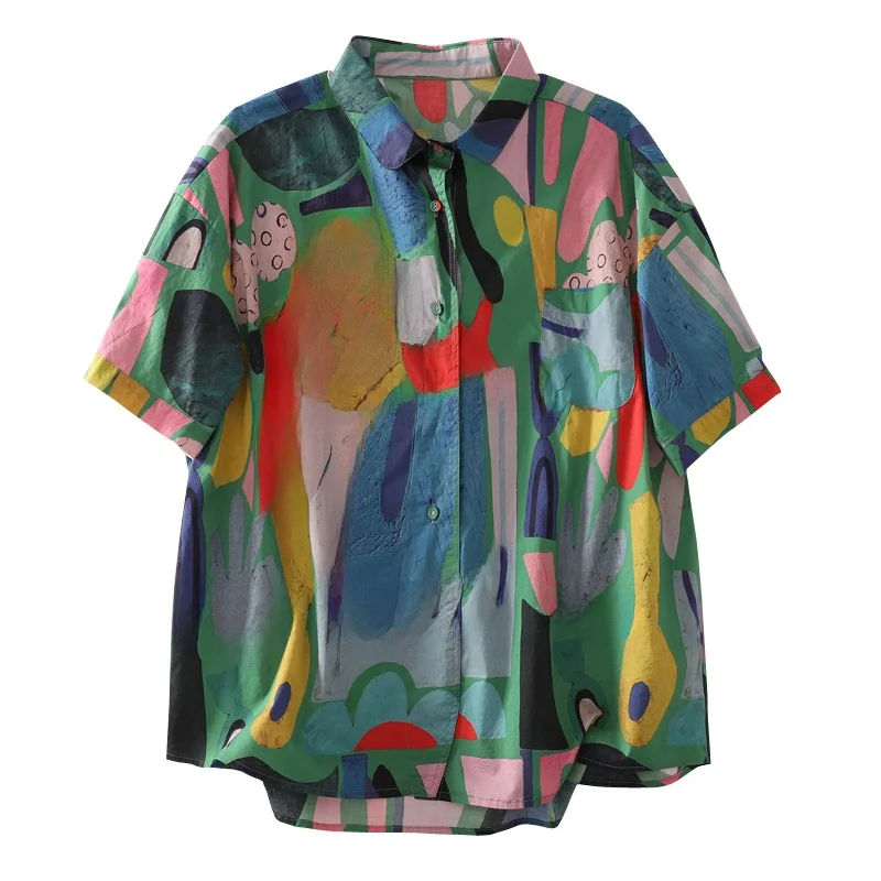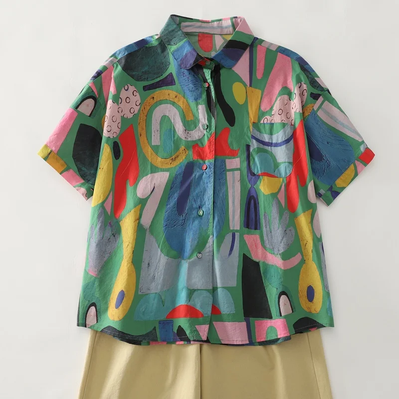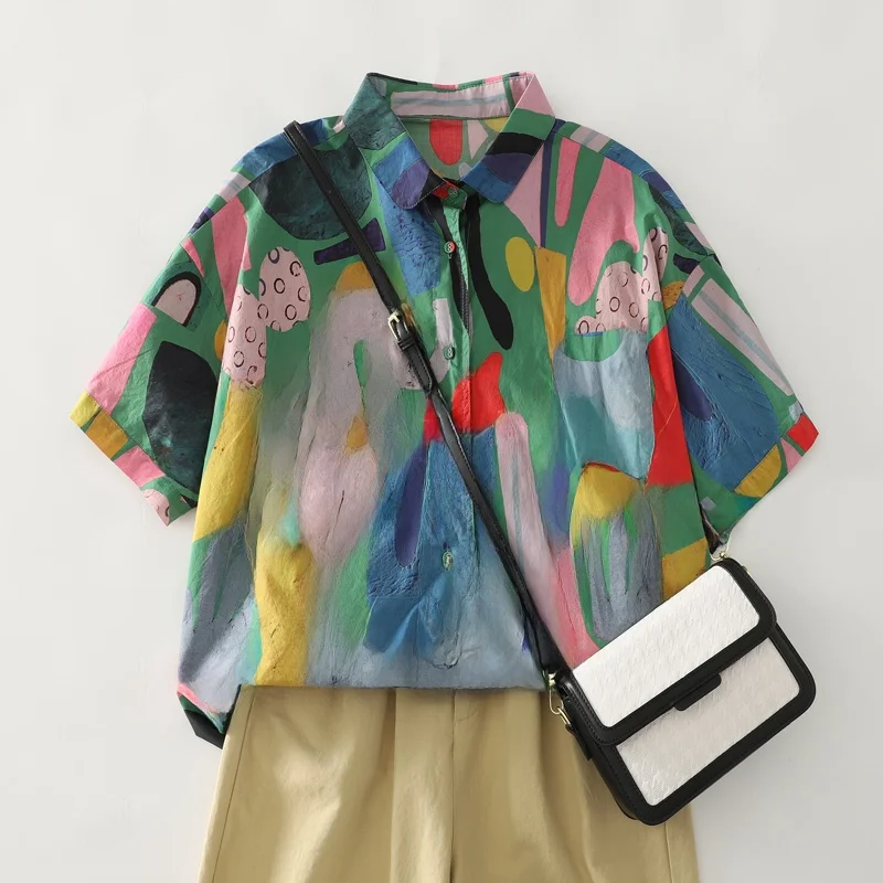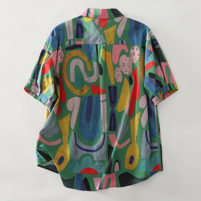 This summer women’s shirt features a casual loose fit, providing comfort and style for daily wear.