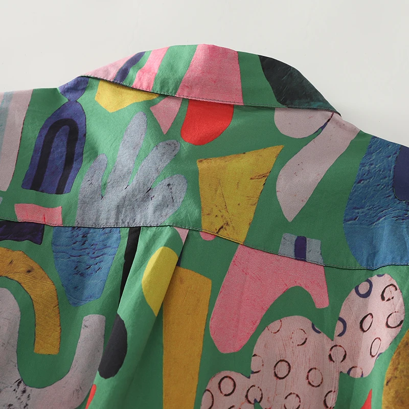 The shirt boasts a vibrant color print design, adding a touch of personality to any outfit.