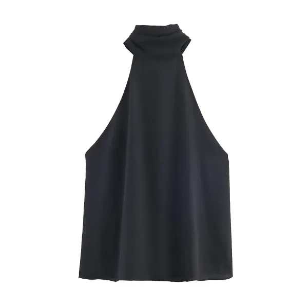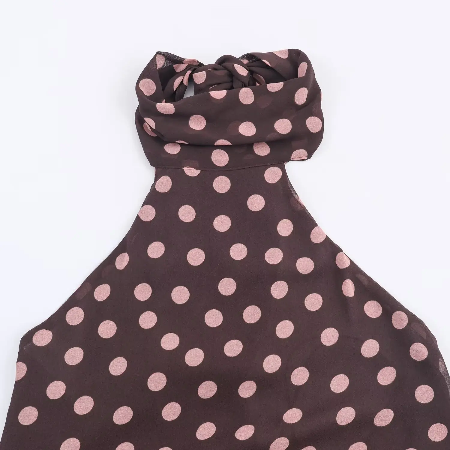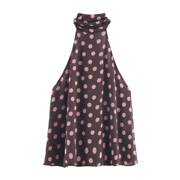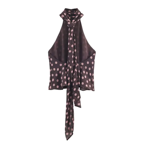 Women’s Summer New Polka Dot Hanging Neck High Neck Top With Lace Up Design Lady Sleeveless Backless Sexy High Street Vest Top